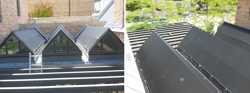 Our exterior sunroom and greenhouse shades that are fixed in place are great for year-round shading control from the outside. They attach to the room with a simple clamp system and are easily removed for cleaning.